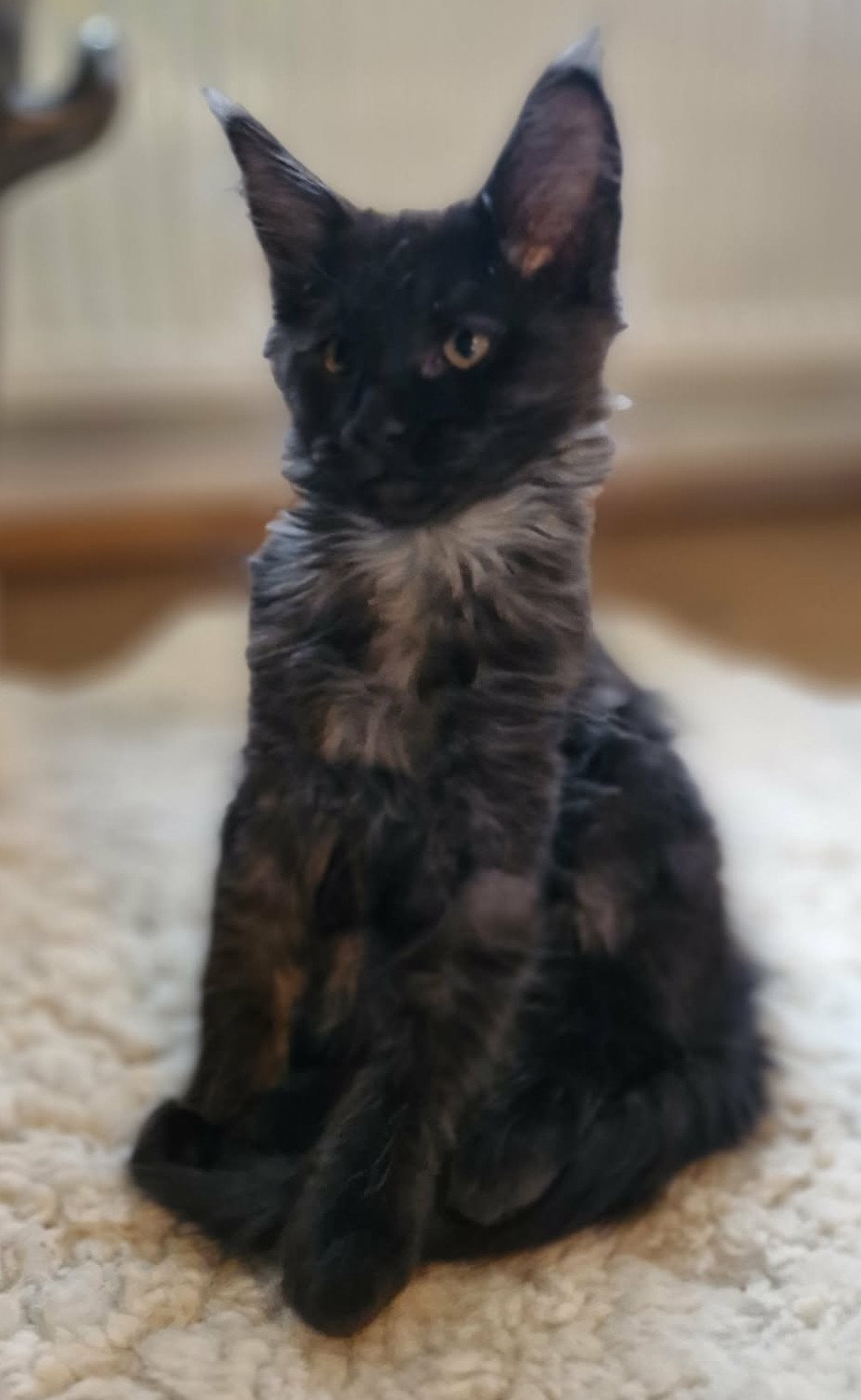 Poppy Rose de Euphory je 11ti týdenní mainská mývalí kočička s PP, která vyrůstá přímo v rodinné domácnosti, takže běžný denní ruch, lidské hlasy i domácí provoz bere jako něco naprosto přirozeného. Má jemnou kresbu, milý výraz a zvídavý temperament – ráda sleduje, co se kde děje a s chutí se zapojí do každé nové aktivity. Je velice milá a přátelská. Používá kočičí záchod, je očkovaná, čipovaná a pravidelně odčervená. Do nového domova dostane malý startovací balíček. K odběru bude připravená v polovině dubna.