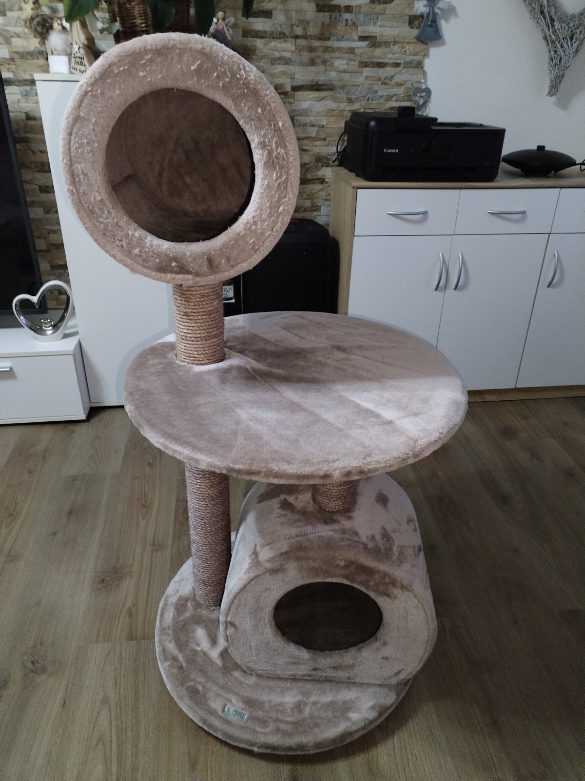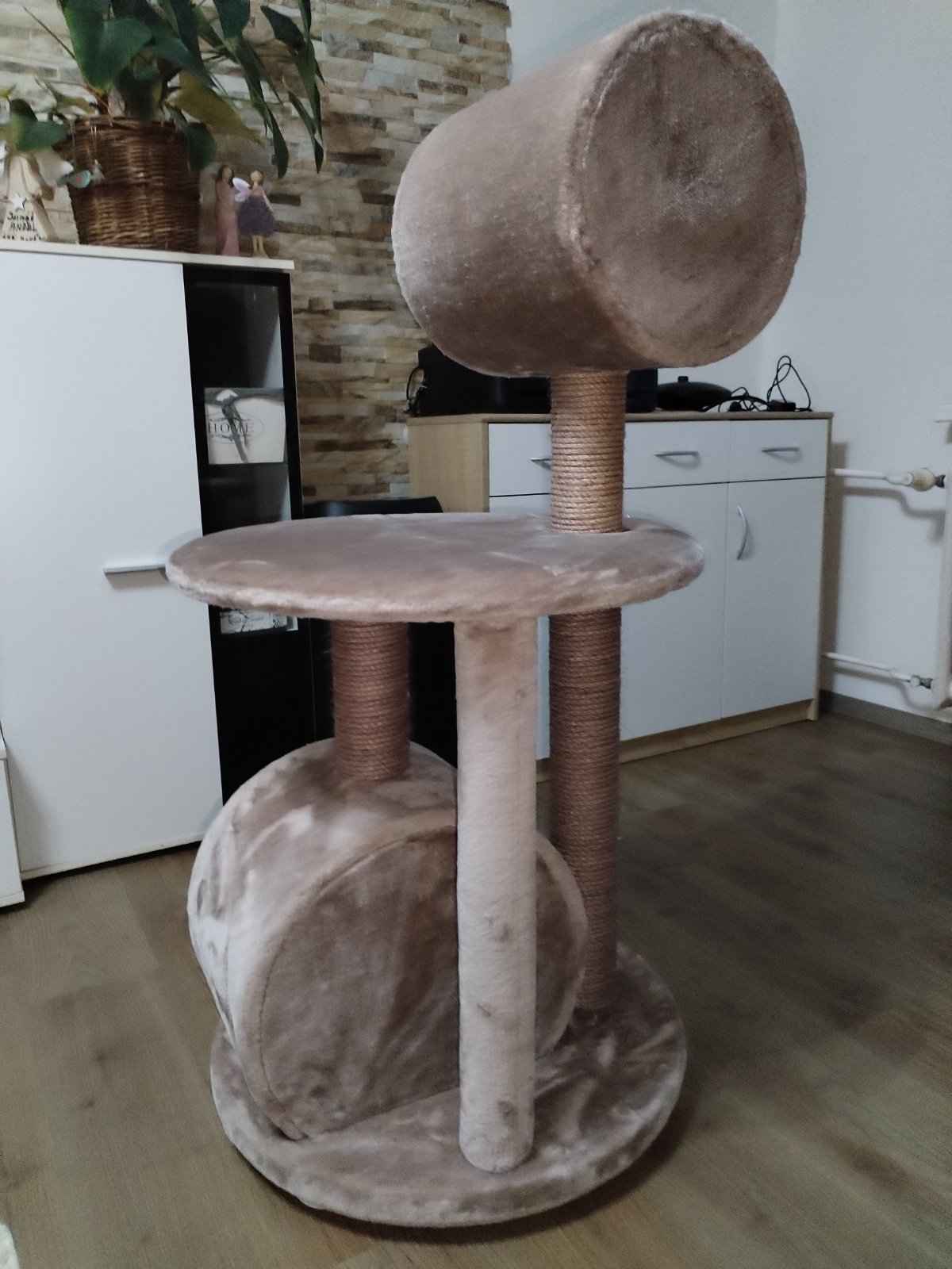 Překrásné škrabadlo s domečky pro kočičí dámu v nádherné leskle růžově lososové barvě, semišové. Velmi bytelné a pevné škrabadlo s dvěmi boudami pro soukromí. Rozměry výška 120 cm, šířka 60 cm. Značka More for cats & dogs. Kromě praktičnosti i krásný a stylový designový prvek do domácnosti pro kočičku. Z čisté nekuřácké domácnosti, pelíšek čistý, v perfektním krátce používaném stavu, stav zánovního. Škrabadla netknutá. Boudičky čisté a útulné poskytující soukromí, ale i výhled, co se kde děje. Pelíšek okamžitě připravený pro novou pyšnou majitelku. Pouze osobní předání v Chodově u Karlových Varů. Neposílám! Cena 1400 Kč