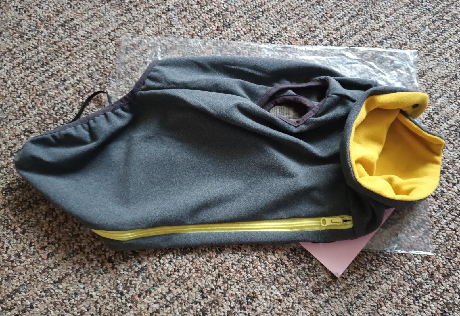 nová šedá flísová mikinka pro pejsky, na zádech praktický zip, nákrčník na patentky, vzadu gumičky na nohy, aby obleček držel - zn. TIAKI - včetně štítku a originál obalu - předání Studénka nebo poštou či do balíkovny