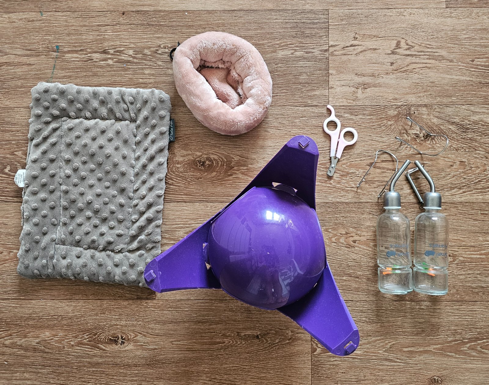 Domeček Sputnik velký, napáječky Small animals Deluxe 177 ml, jedna nepoužitá. Poduška 34x23 nepoužitá. Pelíšek pro hlodavce 19x15 cm používaný týden, bez vad, vypraný. Nůžky na drápky nepoužité.