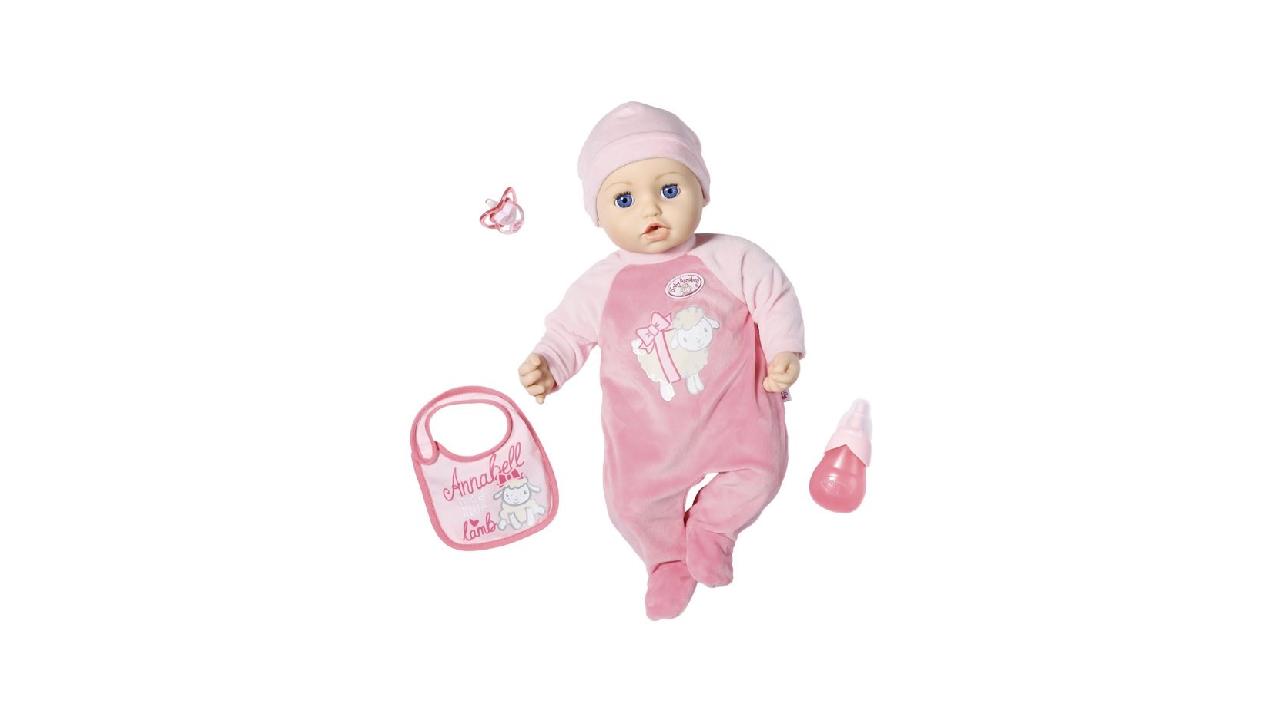 Baby Annabell 43 cm imituje opravdové miminko. Funguje na 3 baterie typu AA. Panenka miminko umí plakat, mrkat, pít z lahve a vydává zvuky jako opravdové miminko.
