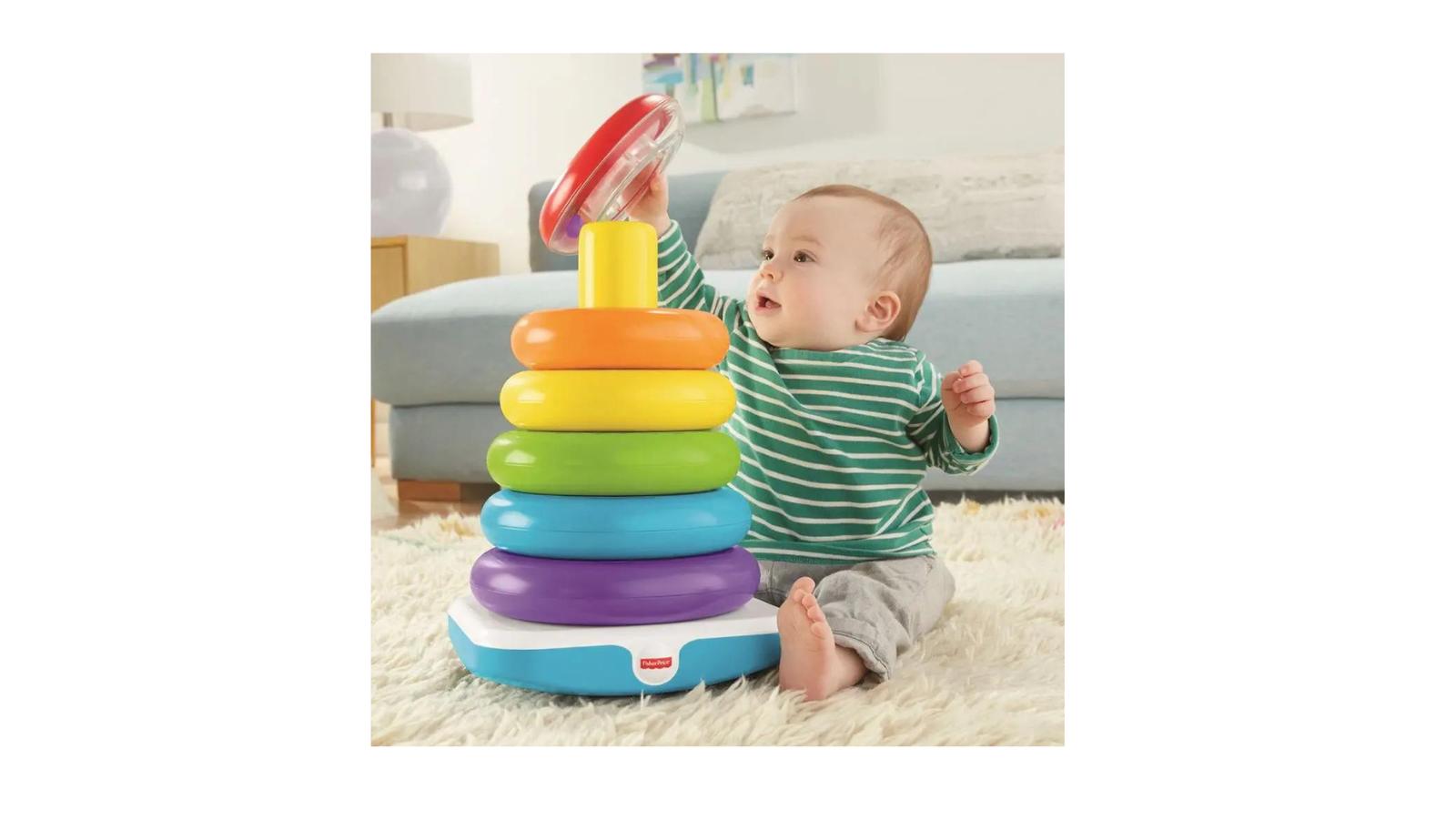 Fisher-Price® Obří kroužky na tyči jsou stavební hrou, která dodává staré klasické hře úplně nový rozměr. Jsou vysoké kolem 40 cm! Vaše děťátko může brát a třást se šesti barevnými kroužky a poté je skládat na sebe na houpající se základnu.