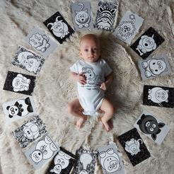 Miminka už od 2. týdne života začínají vnímat kontrastní prostředí, především černobílé předměty. Miminko vidí v počátcích svět v odstínech šedi, černobílé hračky ho proto snadno zaujmou a povzbudí jeho touhu objevovat. Ostatní barvy rozeznávají až kolem šestého měsíce věku. Do té doby jsou pro děti tedy přínosnější hračky či obrázky černobílé.
