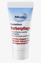 Mivolis pečující mast na jizvy s olejem z mandlí, pšeničných klíčků a šípků napomáhá ke změkčení a vyrovnání jizev. Podporuje pružnost zjizvené pokožky a díky přírodnímu pečujícímu komplexu s olejem z mandlí, pšeničných klíčků a šípků, které osahují kyselinu linolovou, přispívá k regeneraci pokožky. Neobsahuje barviva ani parfémy.
