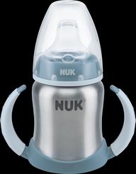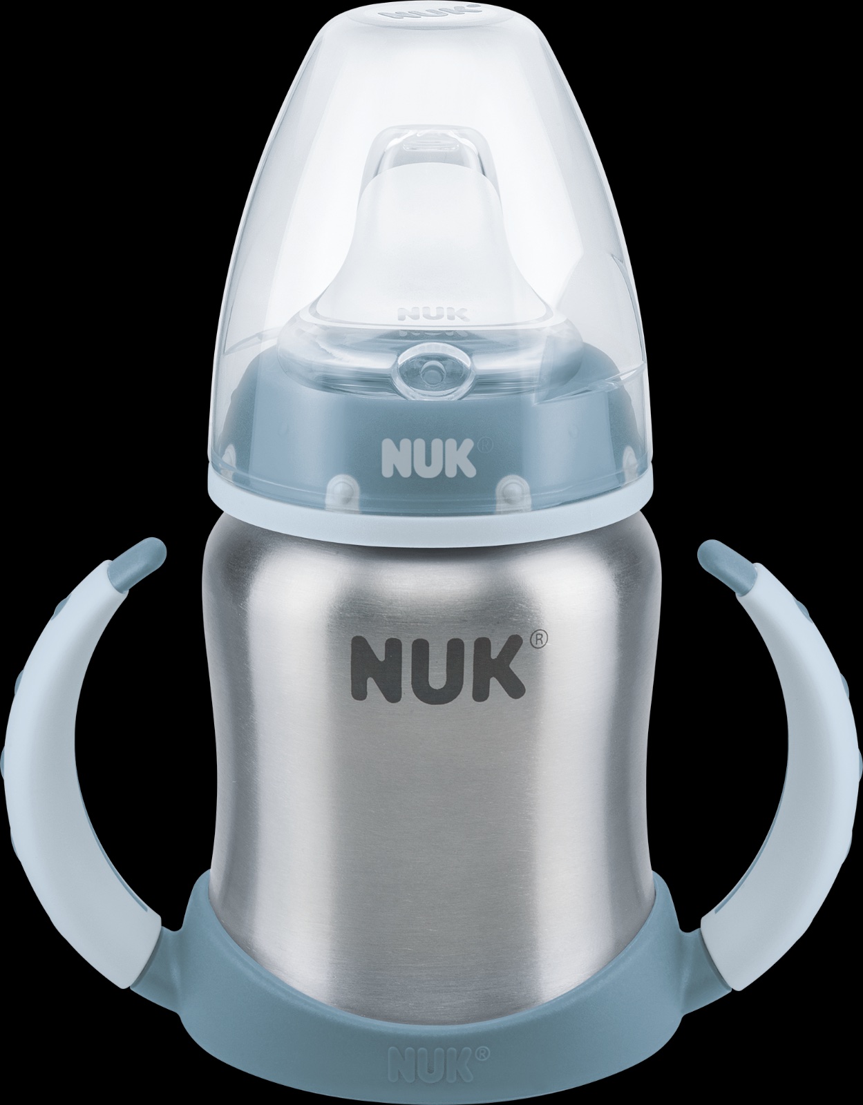 S NUK lahvičkou na učení z nerezové oceli nyní společnost NUK nabízí oblíbenou učící láhev First Choice v nerezovém provedení, která je pro tyto výlety ideální. Dvoustěnný hrneček udrží nápoj teplý nebo studený až po dobu 1,5 hodiny.