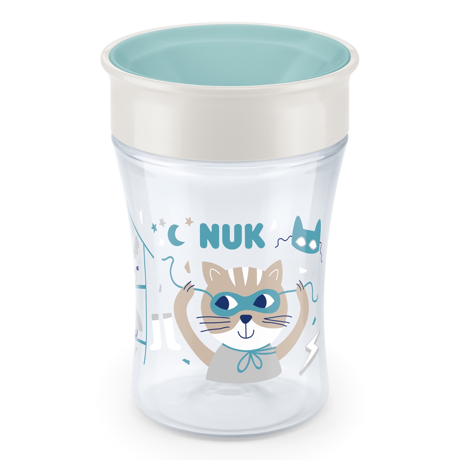 NUK Magic Cup je vyroben z vysoce kvalitního polypropylenu, pojme 230 ml a je kompatibilní se všemi ostatními výrobky řady NUK Easy Learning.