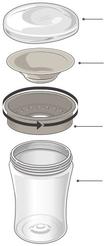 Manipulace a čištění jsou obzvlášť jednoduché, protože pohár se skládá pouze ze tři částí, které lze umývat v myčce na nádobí.