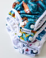 Pratelné plenkové plavky Bamboolik jsou jako stvořené pro pohodové plavání bez nehod. Látkové, opakovaně použitelné. Ve 3 velikostech.