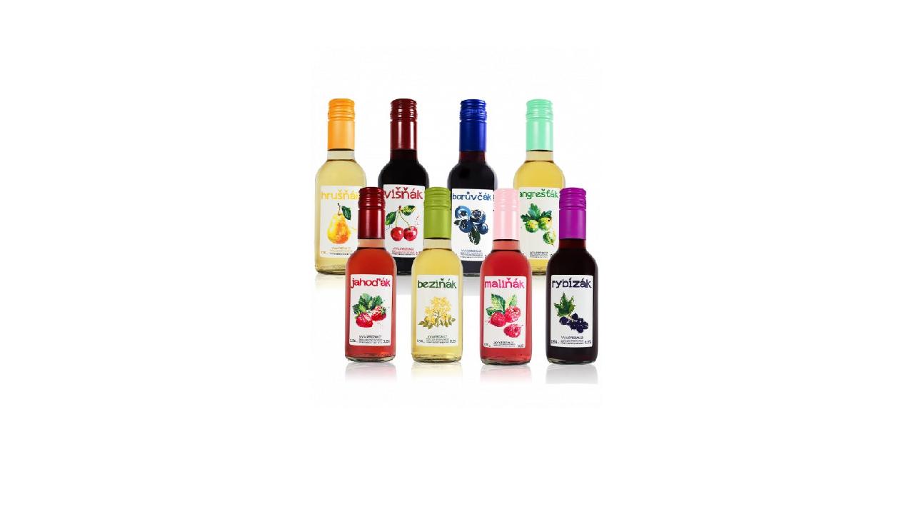 Rybízák mini degustační balíček 8 x 0,25 l je sada mini vín kdy každá lahev vychází zhruba na jednu skleničku vína. Lahve mají šroubovací uzávěr a obsah alkoholu je 11,5% obj.