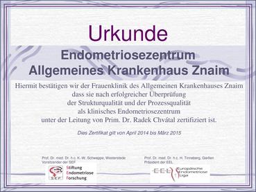 Pracoviště je certifikováno jako první v ČR mezinárodním auditem SEF / Stiftung Endometriose Forschung jako klinické centrum léčby endometriosy: