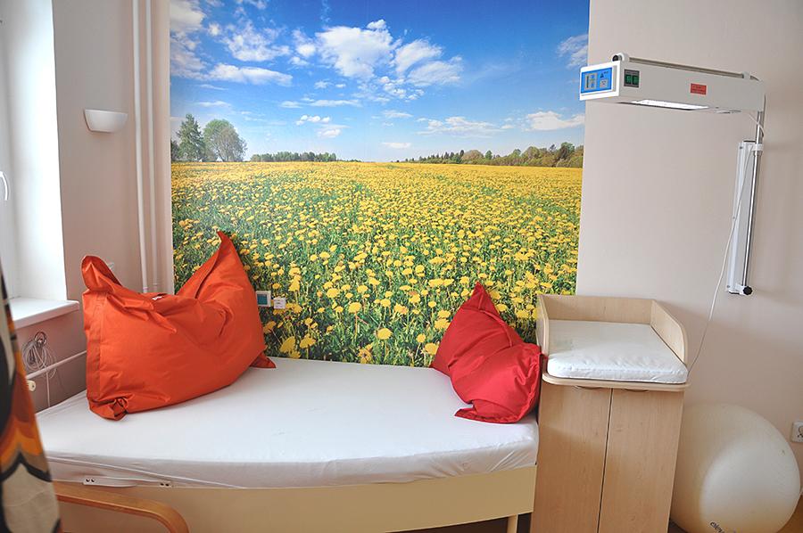 Porodní sál tvoří tři moderně a účelně vybavené porodní pokoje. Můžete zde využít mnoho úlevových pomůcek a trávit celou dobu před samotným porodem se svým doprovodem a v soukromí. Jeden z pokojů je vybaven také porodní vanou. Porodní sály jsou vybavené lůžky, které vám umožní zvolit si porodní polohu.