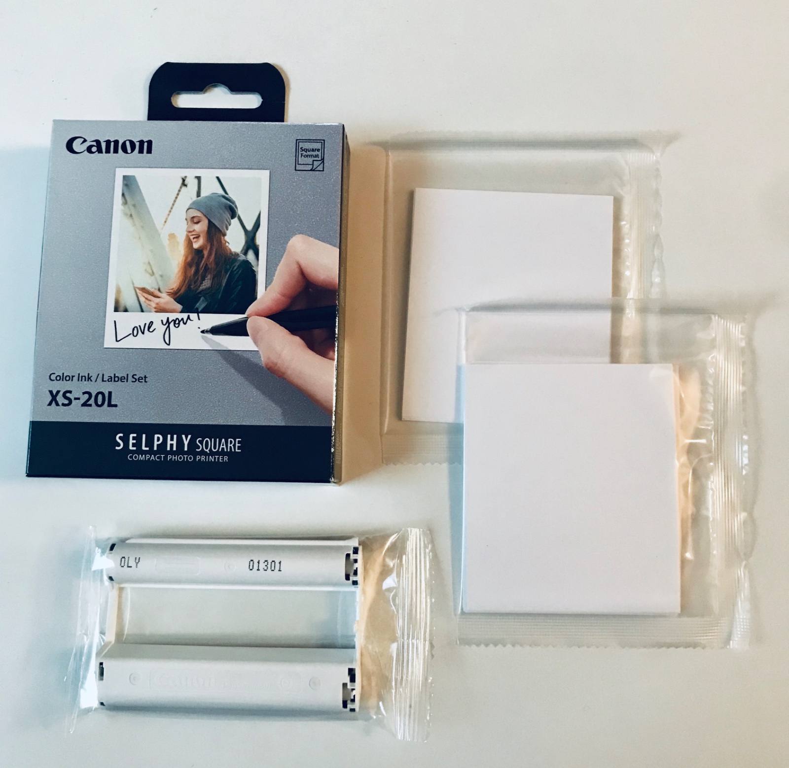 Cca před dvěma týdny jsem byla vybrána na testování kompaktní tiskárny Canon SELPHY Square QX10. Pár dní po té, co mi byla oznámena tato skvělá zpráva, mi byl doručen balíček, který obsahoval tiskárničku, kabel k nabíjení, 3 ks fotopapírů a inkoustovou kazetu k vytištění 3 ks fotografií. K originálnímu balení tiskárny jsem obdržela ještě 3 sady fotopapírů po 20ti kusech (XS-20L), k nimž je vždy přibalena inkoustová kazeta, která vystačí na potištění právě tohoto množství fotopapíru.